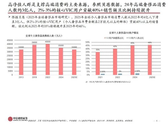 高净值人群是支撑高端消费的主要来源之一中金汇融配资,股市上涨带来的财富效应对高端消费复苏有重要贡献。根据贝恩数据,24年全球高端奢侈品消费人数约3亿人,人群数量庞大,其中2%-3%的核心VIC用户贡献40%+销售额且比例在持续提升。相比于楼市,股市的财富效应近年更为明显,2025年股市上行带动2025年底A股/港股总市值达123万亿元/48万亿港币,较24年底净增24.5万亿元/12.7万亿港元。