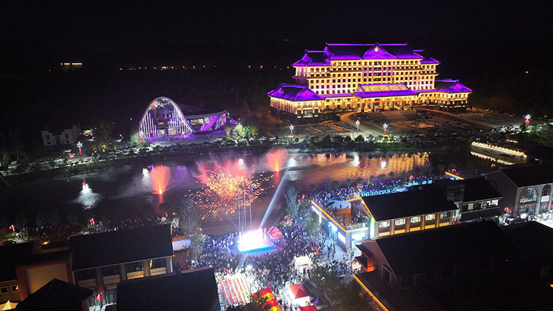 在舒城万佛湖景区,一场以“盛世国庆欢,月满万佛湖”为主题的夜游狂欢彻底颠覆了传统湖区观光旅游模式。当夜幕降临,国风大巡游古装翩跹,重现历史名人风采;独龙族篝火晚会燃起熊熊火焰,游客牵手民族服饰演员载歌共舞;千年非遗“打铁花”在湖面上空绚烂绽放,火花如雨、璀璨夺目;《梁祝》主题花船情景剧婉转上演,将中国古典爱情故事以沉浸式演艺呈现。更令人惊喜的是,春晚同款宇树机器人巡演队伍穿梭在游客之中,不仅带来科技感十足的舞蹈表演,更通过趣味互动任务发放“景区银票”消费券,巧妙激活夜间二次消费链条。